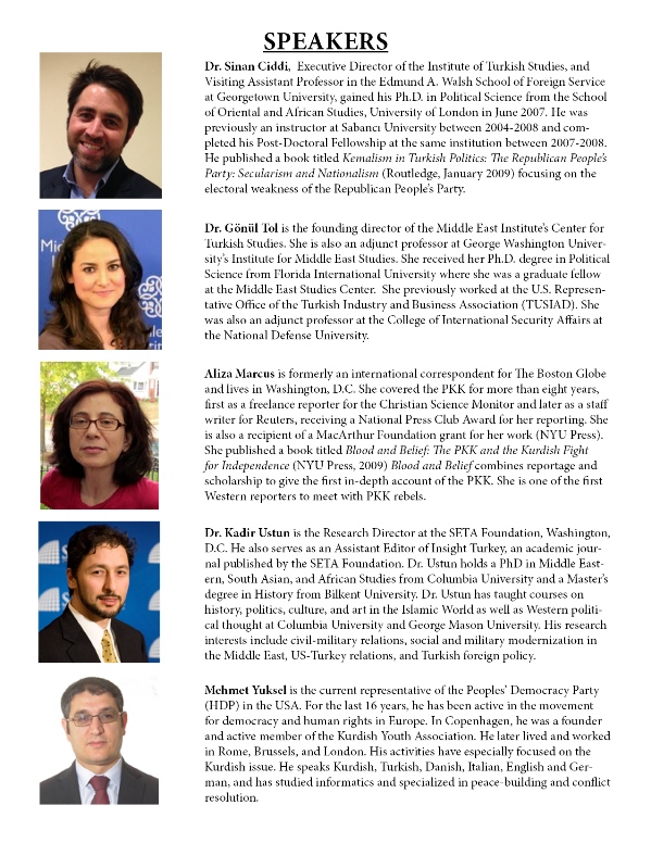 Panelists: Aliza Marcus, Journalist and the author of Blood and Belief Dr. Kadir Ustun, SETA Foundation, Washington, D.C. Mehmet Yuksel, Peoples’ Democracy Party (HDP) Washington, DC Representative