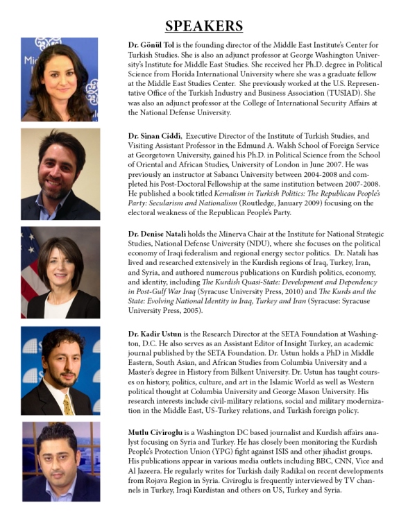 Panelists: Dr. Denise Natali, National Defense University Dr. Kadir Ustun, SETA Foundation at Washington, D.C. Mutlu Civiroglu, Journalist and Kurdish affairs analyst