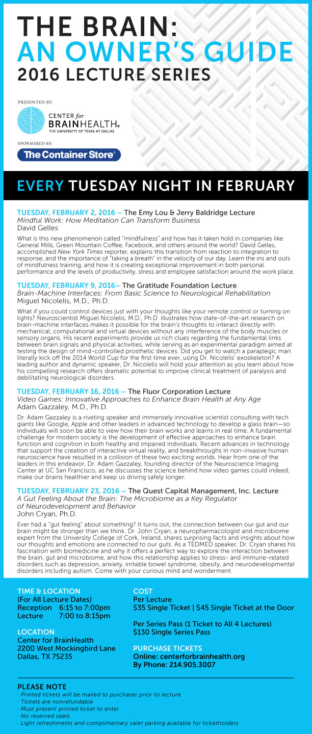 2016 BrainHealth Lecture Series, The Brain: An Owner's Guide, sponsored by The Container Store