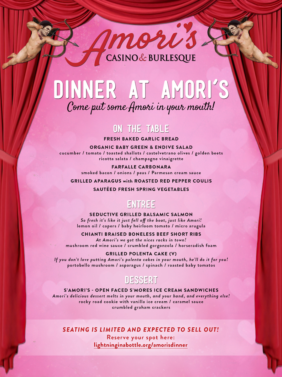 Head on over to Amori’s Burlesque & Casino by 7pm each night for family style, Italian inspired dishes compliments of the good folks at Dub Gypsy Kitchen. This immersive dinner will feature live music, burlesque performances, a sensual atmosphere, and a romantic meal for all in attendance. If mouthwatering meats, delicate pasta, and zesty red sauce sound like your style, act fast and make a reservation for Dinner at Amori’s. Opting for supreme coziness over the roar of a crowd, the spots in this meal experience are about as limited as the food is delicious!