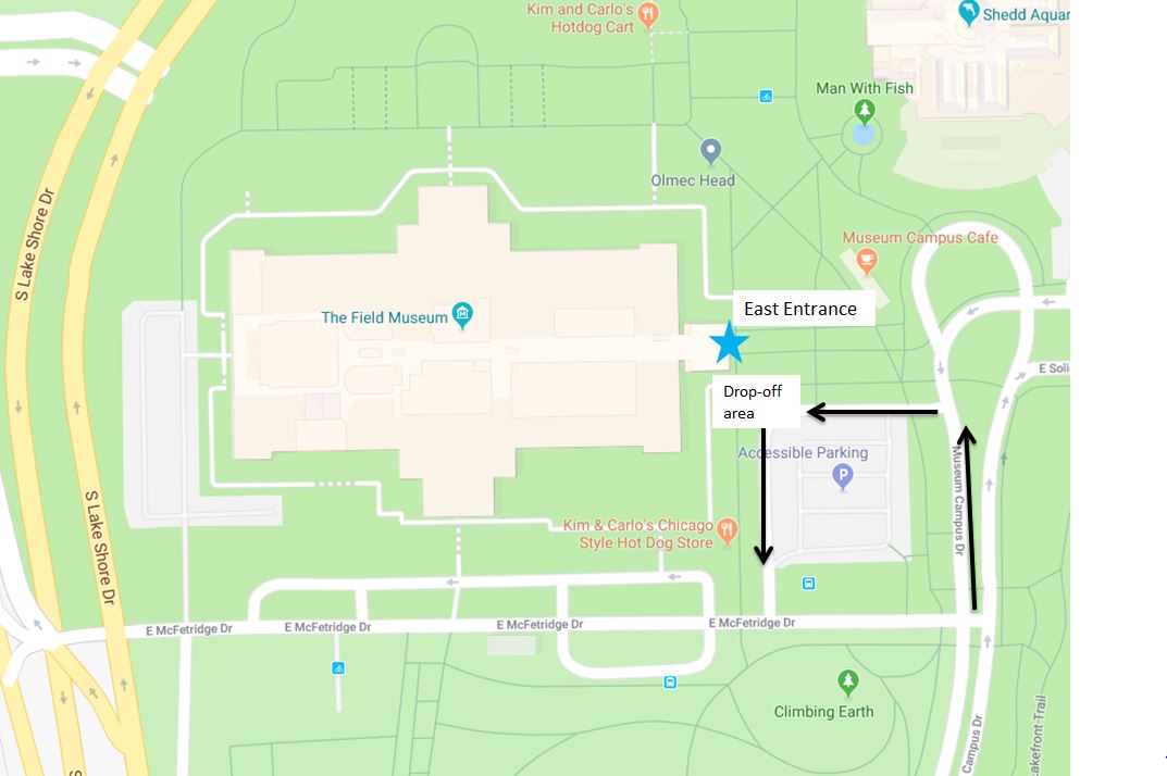 - The event entrance will be on the EAST side of the Field Museum. THERE WILL BE NO ENTRY AVAILABLE AT THE SOUTH ENTRANCE.