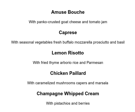 Phenomenal food and incredible company await you at the chef's table! Join Cozymeal’s upcoming cooking class Join “Italian Inspired Small Plates” with Chef Latisha for an intimate 3-hour culinary experience and 5-course meal.