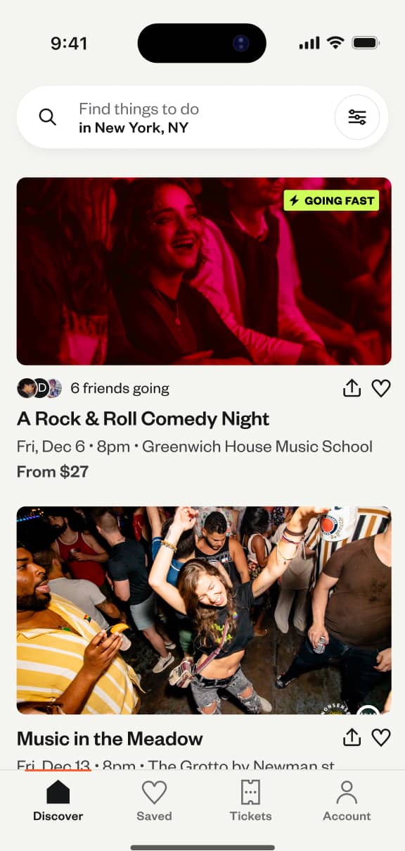 Our updated event listings also show you which of your friends have bought tickets to an event, so you can make plans knowing who will be there.