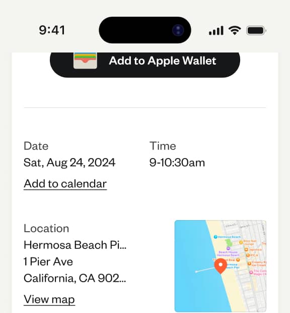 Access your tickets in the dedicated tab, or save them to your phone wallet. No need to print tickets ever again. Getting into events will be a breeze.
